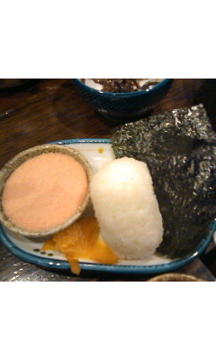 明太子のタレ?みたいなものを付けて食べるんだけど