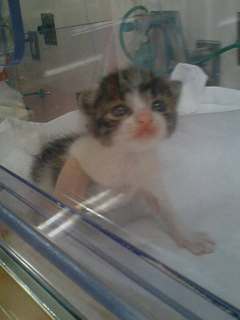 小さな冷たい子猫を抱き上げて車ですぐさま24時間やってる動物病院に向かうことに。