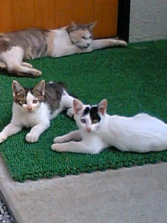 写真は、うちの前の家に自然と住み着いている野良猫親子の写真。