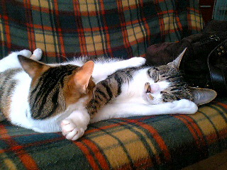 でも、夜はママのお膝で眠るですニャ!