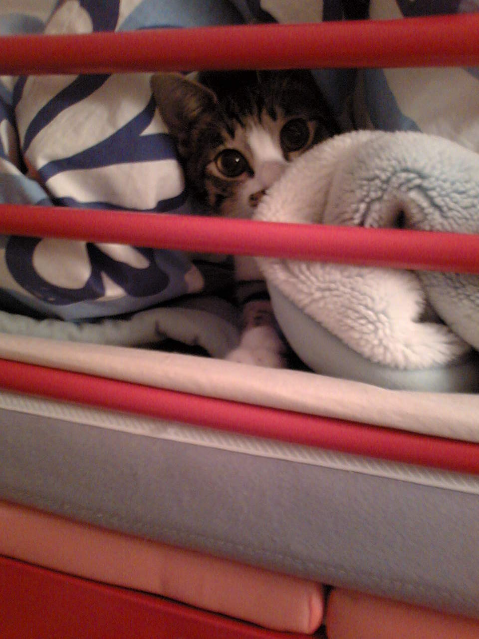 雄の方のハルくんが、毛布と羽毛布団の間に入って遊んでました!